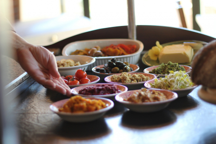 Ein Highlight ist das Frühstücksbuffet. Vegane Aufstriche, Ayurveda Frühstücksbrei, Grillgemüse auch aus heimischem Anbau, Rohkost, gebackenes Obst, Waffeln und mehr finden Sie täglich bei uns.