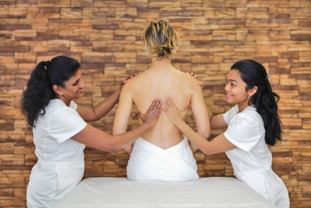 - Durchführung der bedeutendsten ayurvedischen Massagen (8 Synchronmassagen, 14 Spezialanwendungen) durch speziell ausgebildete Ayurveda-Therapeuten gemäß den alten Sanskrit-Schriften: Die Behandlung von Frauen erfolgt nur durch Frauen, von Männern nur durch Männer. Die verwendeten Massage-Öle und Kräuterzusätze sind aus kontrolliert biologischem Anbau und entsprechen dem individuellen Konstitutionstyp. Für Erholungsphasen nach den Behandlungen steht nach Möglichkeit ein privater Ruheraum mit Badezimmer zur Verfügung.