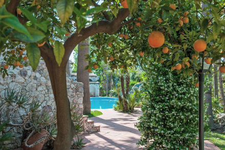 La Villa ist von einem üppigen mediterranen Garten umgeben, der mit tropischem Grün bepflanzt ist. Mit mehr als zehn verschiedenen Arten von Palmen, Hibiskusbäumen, Sukkulenten und tropischen Pflanzen bietet dieser Reichtum an Natur eine entspannende Umgebung für die Gäste, während sie die herrlichen Sonnenuntergänge Siziliens mit einem Glas Wein aus der Region genießen.