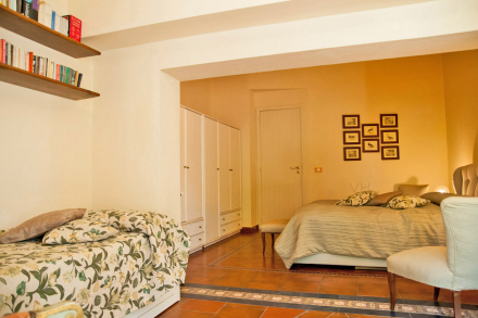 Mit spektakulärem Blick auf den Ätna von einer privaten Terrasse und auf das Zitronenanwesen von der gegenüberliegenden Terrasse, besteht diese Suite im ersten Stock aus zwei Schlafzimmern – einem Queen-Size-Zimmer und einem großen Einzelzimmer sowie einem kleinen Arbeitsbereich. Beide teilen sich ein geräumiges Badezimmer mit Hydromassage-Badewanne und Dusche. Die Suite ist flexibel und kann problemlos bis zu fünf Gäste beherbergen. Sie ist ideal für eine größere Gruppe von Gästen oder eine Familie.