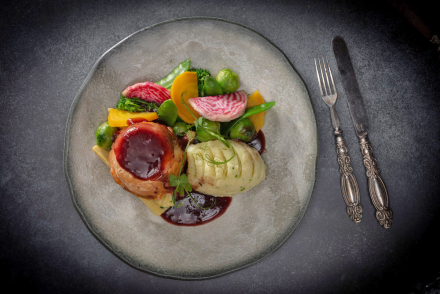 h3. 100% pflanzenbasierte GerichteDas Küchenteam verwendet die besten Zutaten von lokalen Lieferanten und kreiert atemberaubende pflanzliche Gerichte, die kompromisslos köstlich, gesund und genussvoll sowie tierleid-frei, nachhaltig und saisonal sind, darunter Gerichte wie “Sticky Seitan Ribs”, “Mushroom Stroganoff Suet Pudding” und “Battered Banana Flower with Salt and Pepper Chips”. Zu den weiteren Gerichten gehören Zitronen-Thymian-Ballotine von gekräutertem Seitan mit knuspriger Polenta, geröstetem Paprikapüree und Karotten-Speck-Crisp, und als Dessert Granatapfel-Rosen-Mousse mit Vanille-Baiser, Rosen- und Kardamom-Creme, Früchten der Saison und Sesamkrokant.