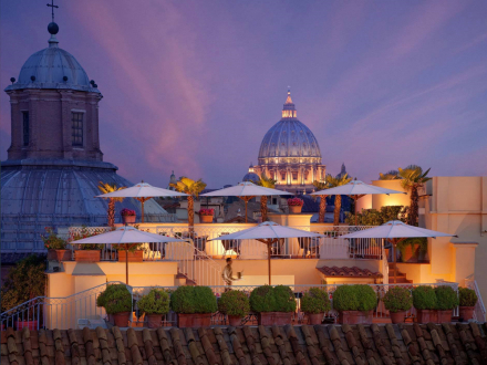 Nur wenige Schritte von der Piazza Navona entfernt befindet sich dieses 5-Sterne-Luxushotel – ein Dachgarten mit Blick über die Ewige Stadt