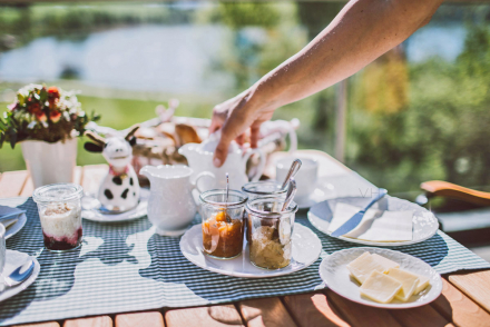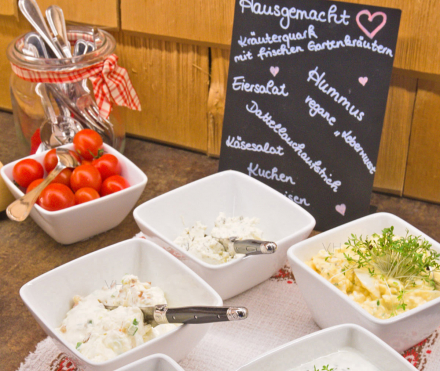 Unser Frühstücksbuffet bietet eine Auswahl an hochwertigen veganen Speisen sowie ausschließlich regionale und meist biologische Produkte von Landwirten und Erzeugern aus dem Allgäu. Ein Teil unseres Obstes, Gemüses und Kräuter kommt sogar aus unserem hauseigenen Permakultur-Garten, aus denen wir selbst unsere veganen Aufstriche, Marmeladen und Chutneys herstellen.