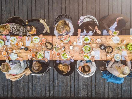 Wir möchten auch gesundheitsbewusste Veganer glücklich machen und servieren deshalb als Hauptkomponente des Abendessens, zusätzlich zu unserem veganen Vorspeisen- und Beilagen-Buffet, ein veganes Gericht.