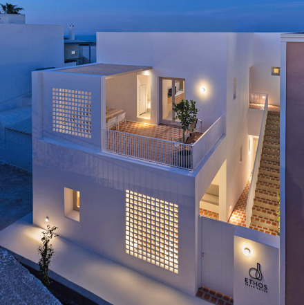 Ethos ist ein authentisches ökologisches Hotel mit einem veganen Frühstücksangebot in der Hauptstadt von Santorin, Fira. Wände mit Blumen und Kräutern und ein Bio-Garten auf dem Dach vereinen sich mit eleganten Suiten, damit Sie Ihren Urlaub mit vollem Respekt für die lokale Natur und den Planeten genießen können.