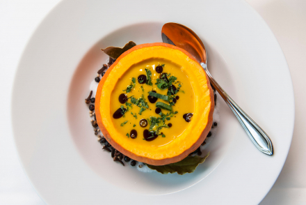 Für die veganen und vegetarischen Gerichte verwendet das Haus ebenso regionale und saisonale Gemüse sowie Kräuter aus dem hauseigenen Garten. So gibt es regelmäßig wechselnde vegane Gerichte auf der Speisekarte.