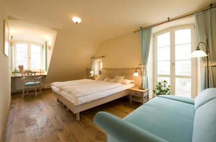 Im Gutshaus Parin trifft elegantes Ambiente auf herzlichen, ländlichen Charme. Die Zimmer sind baubiologisch gestaltet und sorgen für eine gemütliche, entspannte Atmosphäre.