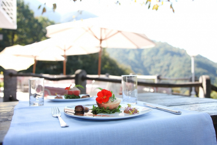In den weitläufigen Kastanienwäldern kann man wandern, den Yoga-Parcours begehen, am Panorama Pool ausruhen, Atem schöpfen, meditieren, Stille erleben.