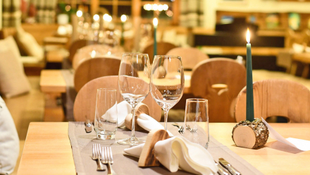 In unserem hellen Restaurant beginnen Sie den Tag mit einem reichhaltigen Frühstück mit feinen Produkten aus der Region. Und auch mittags und abends verwöhnen wir Sie mit lokalen Speiseangeboten, die mit Zutaten aus der Region liebevoll zubereitet werden.