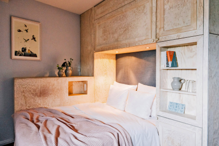 Jedes der 27 individuell gestalteten Zimmer verfügt über ein Radio mit einem Haussender. Auch ein Dachgeschoss-Apartment kann gemietet werden.