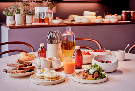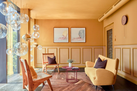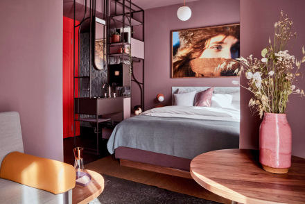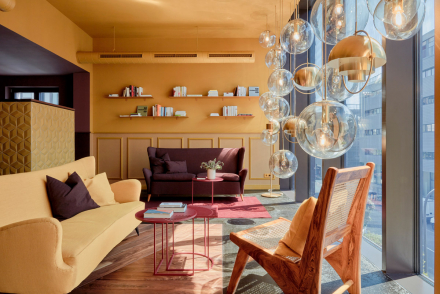 Insgesamt verfügt das Haus über 100 Gästezimmer, eine Bäckerei von unseren Partnern PLANTS & CAKES, ein Restaurant mit Weinbar, einen Garten- und Außenbereich mit Kräutergarten, einen Multifunktionsraum, eine Bar mit Dachterrasse, einen Fitnessbereich sowie Coworking-Areale auf jeder Etage.