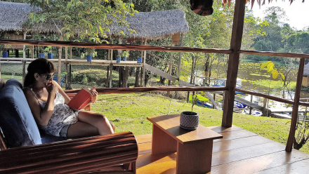 Jeder private Bungalow hat ein geräumiges Badezimmer mit Warmwasser und biologisch abbaubarem Shampoo, Conditioner, Seife und Waschmittel für Ihre Wäsche. Darüber hinaus Bestitz jeder Bungalow eine private Terrasse mit Hängematten, auf der Sie in aller Ruhe die Symphonie der Natur bewundern und ihr lauschen können.
