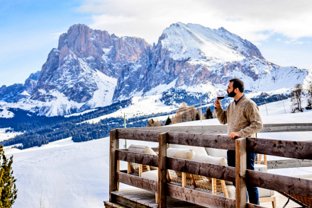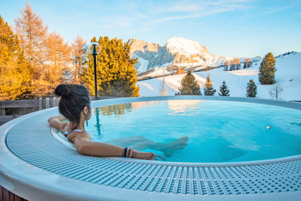 Unser Hotel befindet sich auf der Seiser Alm, direkt neben dem Paradiso-Hang, der bequem mit den anderen 70 gut preparierten Pisten des Superski-Gebiets der Dolomiten verbunden ist.