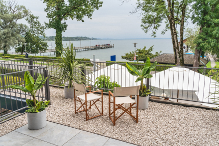 Sieben modern eingerichtete Doppelzimmer laden zum Verweilen auf dem Balkon ein, von dem aus man den See und die Berge sehen kann
