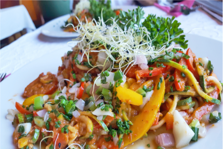 Diese Gerichte können gern je nach Wunsch des Gastes vegetarisch und auch konventionell ergänzt werden.