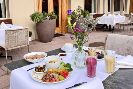 Mit dem Kräuterduft aus dem Restaurant und dem Weitblick fast bis zum Bodensee, kommt Ferien-Feeling auf. Dass Genuss und pflanzliche Ernährung keinesfalls widersprüchlich sind, erfahren die Gäste mit den täglich wechselnden 4-Gang Menüs liebevoll kreiert von dem Küchenteam. Für alle, die in einen energiereichen Tag starten wollen, überrascht die Küche mit einem appetitlichen Frühstücksbuffet und frischgepressten Säften aus dem Obst- und Gemüsekorb. Auch beim reichhaltigen Mittagsbuffet kommt die Gaumenfreude nicht zu kurz. Ganz nach dem Sonnenberg Ernährungskonzept sind alle Speisen nicht nur vegan, sondern auch frei von Gluten, Zucker und Soja. Wo sonst kann man es sich so bedenkenlos gut gehen lassen – vom Frühstück bis zum Abendessen.