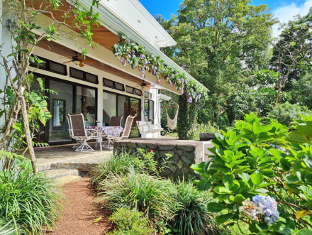 Fünf Hektar üppige tropische Natur und Gärten sind Teil des Paradieses: Dschungel, Park mit verschlungenen Wegen, welche zum See führen, Fruchtbäume, 12 verschieden farbige Hibiskussträucher, welche das ganze Jahr blühen.