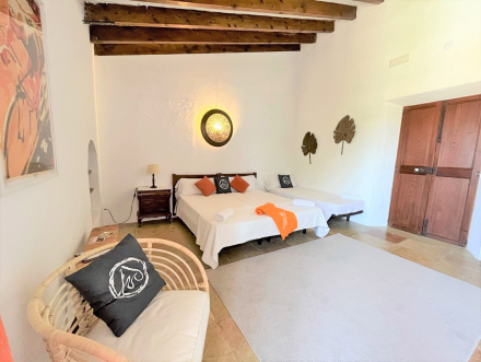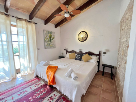 The rustic finca hotel with 12 rooms is located in the southeast of Mallorca, far from any tourism, surrounded by meadows, fields and fruit trees. The hotel’s own olive plantation, the orange & lemon garden and the landscaped pool area make the country idyll perfect.