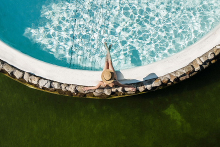 Adults relax all year round in heated indoor & outdoor pools (32 – 38°C even in snow) and in the soft mountain spring water of the natural swimming pond.