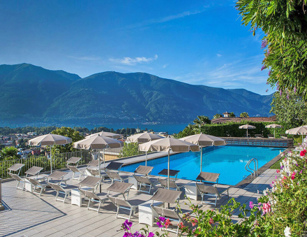 The hotel offers guests 67 rooms, splendid subtropical private gardens and a sunny pool for unforgettable moments of complete relaxation. The tastefully decorated rooms and apartments are elegantly furnished. The rooms on the south side all have their own panoramic terrace with a wonderful view of the lake or the lush flower-filled park.