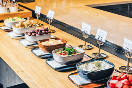 The &flora restaurant seats 60 guests. The Kitchen Area can be booked for events, as can separate event spaces for up to 30 people.