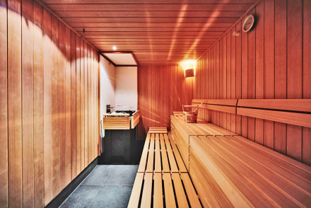 It goes without saying that there is a fully equipped gym and a sauna with a “relax area” for working out and relaxing.