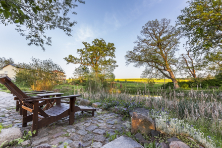 The vegetarian hotel is situated about 6 km from Stellshagen, tucked away in a lovely, remote corner of the Mecklenburg countryside and surrounded by woods and ponds.