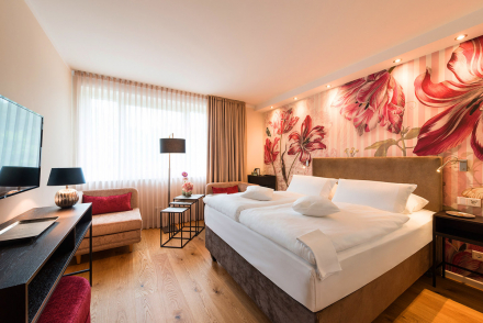 Enjoy the comfort and style of the 120 guest rooms and suites, all of them are furnished with box spring beds. You will find a basket with bath towel on arrival at the hotel, at reception you will get a bathrobe for use during your stay.