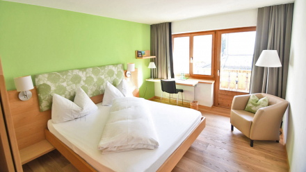 Our 22 rooms are all equipped with larch wood floors and most of them have a large balcony with a view of the mountains and the valley. We also have wheelchair accessible rooms in Uclivetta, our annex.