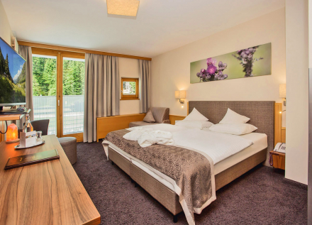 After our reconstruction in summer 2016, we offer many new features for your pleasure. There is a new restaurant area with a new bar, and a modern lounge connects the original house with the compound. Enjoy a most spectacular view of the mountain scenery from our sun terrace and the new SKY rooms. Sports enthusiasts can burn off their energy in our new fitness room and when working out in correspondence to our free vitality fitness programme that includes gymnastics, Yoga, Pilates, snowshoe hiking, and much more.