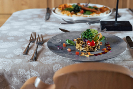 Start your day with our rich and substantial breakfast buffet. Throughout the day you can enjoy sweet and hearty refreshments at our lunch buffet, and in the evening, our 5 course menus will delight gourmets of all ages. The perfect accompanying wines come from our very own wine cellar, where treasures from the most renowned vineyards are stored. Our chef de cuisine Robert has been with us for 20 years now and takes exemplary care that all his menus are made from regional and sustainable products: fresh, creative, colourful and vitalized. As a dedicated sportsperson, he knows how important a well-balanced diet and natural ingredients are. We offer vegan and vegetarian choices for every meal, to comply with our motto “Vegan and Fresh”.
