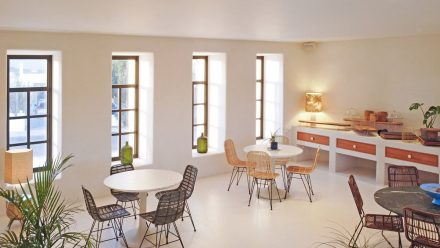Our unique 5 star Boutique Hotel includes: 14 suites, all with their own design and different from each other, functional training gym, magnesium pool, spa with a sauna and a pool restaurant. Koukoumi Plant Based Restaurant serves breakfast, brunch, lunch and dinner and has evolved to serving fine dining dishes and soon will be adding a menu degustation to its cards. A yoga deck is also planned to be built for our guests, next season.