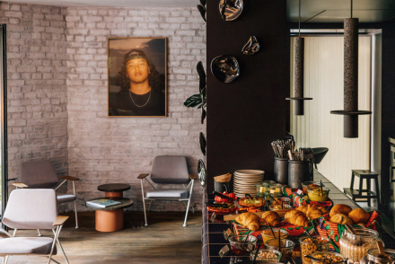 In the living room café, the local heroines of Plants & Cakes offer vegan breakfasts, as well as savory and sweet items during the day, such as raw-vegan cakes, sandwiches and bowls.