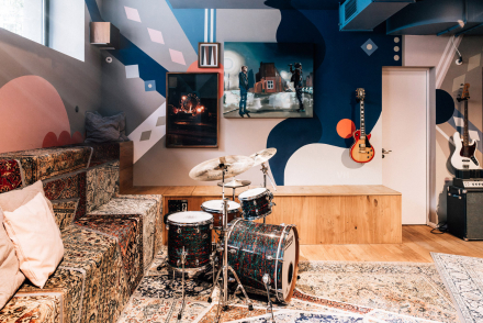 A gym in the basement allows for sporting activities, and on the first floor of the house there is even an in-house recording studio, where music is regularly produced and concerts are held.