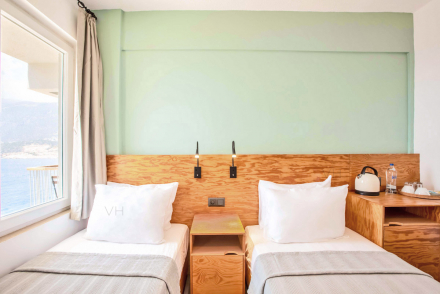 Our recently renovated rooms and bathrooms provide a modern and comfortable stay during your holiday. Our upper floor rooms feature private balconies with sea views, while the ground floor rooms offer lovely patios with partial sea views. In addition to providing comfort, we prioritize sustainable tourism and have taken measures such as using solar energy for water heating, locally sourced products, and high-quality dispensers instead of single-use toiletries.