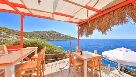 The beach at Mavilim offers a relaxing and tranquil atmosphere, with sun decks and clear Mediterranean waters just steps away from your room. When you book your stay with us, your spot at the beach is already reserved, and we offer vegan and vegetarian cuisine and special drinks for you to enjoy.