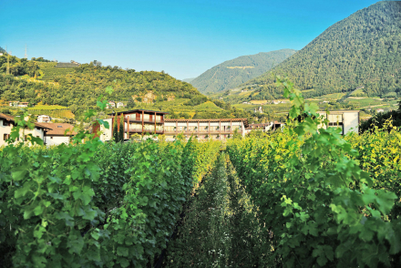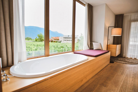 Hotel Schwarzschmied is located in the centre of Lana, surrounded by vineyards and orchards, immersed the historic 16th century Schwarzbauer Garden. The large windows allow nature to virtually enter into the hotel, thereby penetrating almost every corner. That’s the reason for such an extraordinary visual interplay between interiors and exteriors at our hotel in Lana.