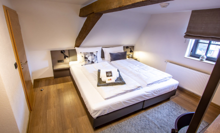 In the 17 rooms and suites you sleep in comfortable box-spring beds. The minimalist style of the rooms gives you space for your own thoughts and does not seem overloaded at all. The rooms are characterized by natural materials.